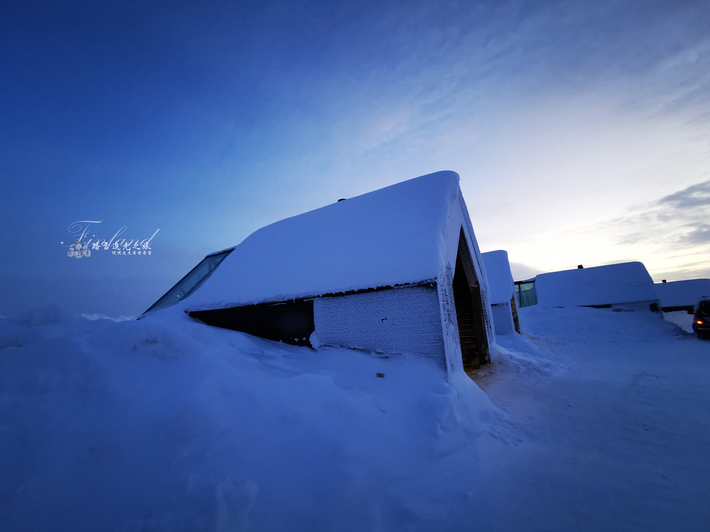 去前台拿了我们的房卡,迫不及待入住极光玻璃屋。所有的玻璃屋位于前台建筑对面的小坡上,先补两张第二天清晨拍的外观图。