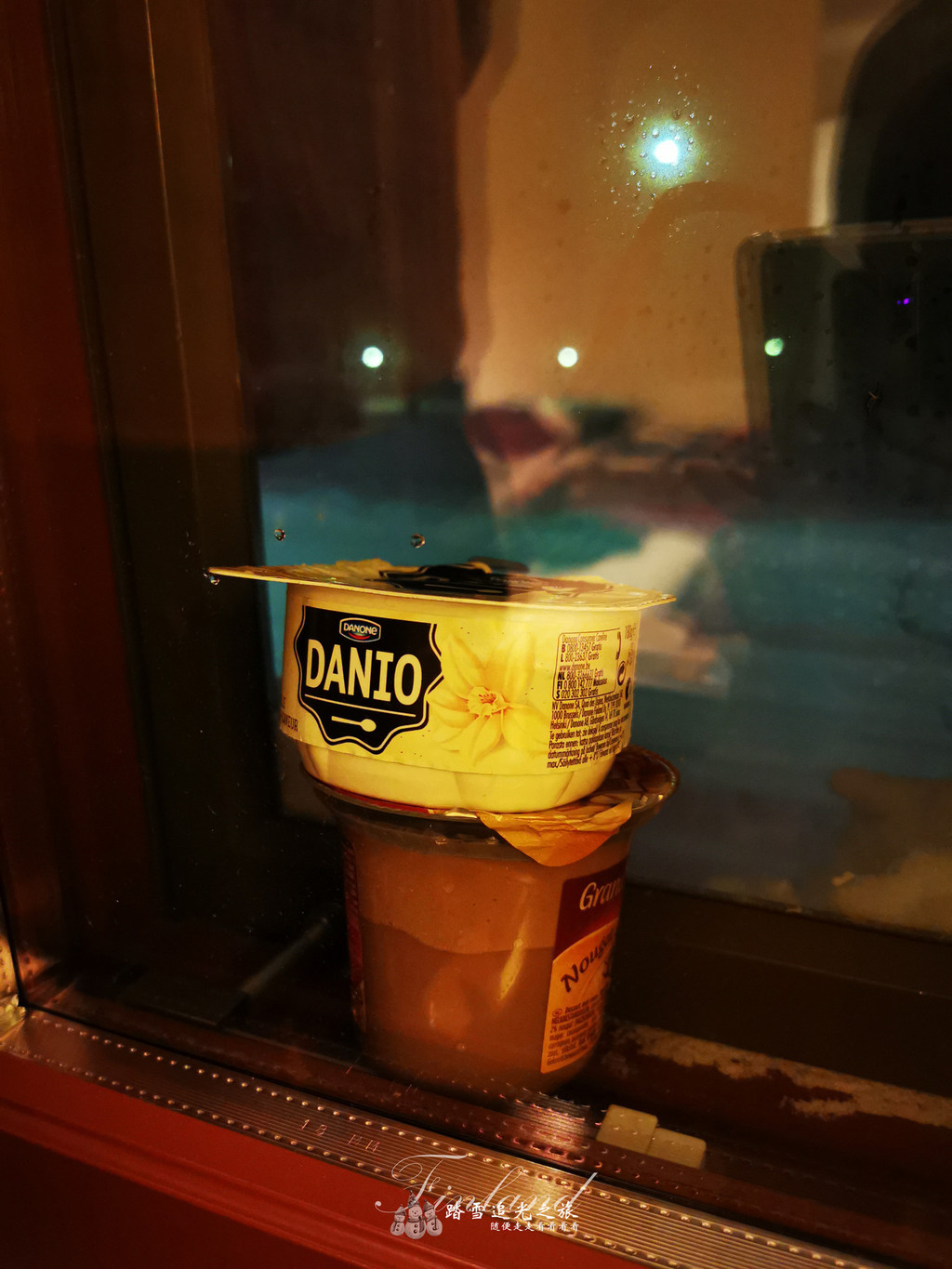 因为附近实在没啥餐厅,晚餐就去了就近的超市买了些吃的解决了~ 最爱的还是各类乳制品,不过房间由于没有小冰箱,于是双层玻璃窗完美替代~