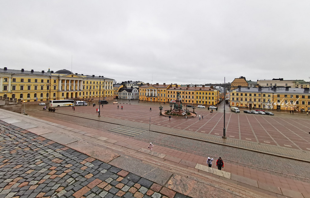 大教堂前是参议院广场,东西两侧分别为内阁大楼和赫尔辛基大学,南面不远处是总统府、最高法院和市政厅所在地。