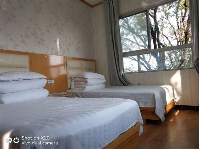 这里背靠景区顶峰观景台,被闻名遐迩的万亩山桃园桃花湾环抱,风景宜人、空气清新,是出行旅行的好去处。