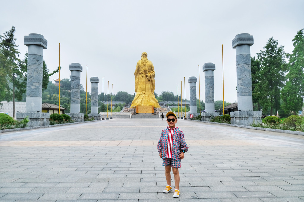 身后就是老子金像,春秋末年圣贤老子辞官西行,途径函谷关被关令尹喜盛情挽留于此,在此期间老子著书立说《道德经》,开创我国独有一脉道家文化,留下洋洋洒洒五千言,影响世界二千五百年!