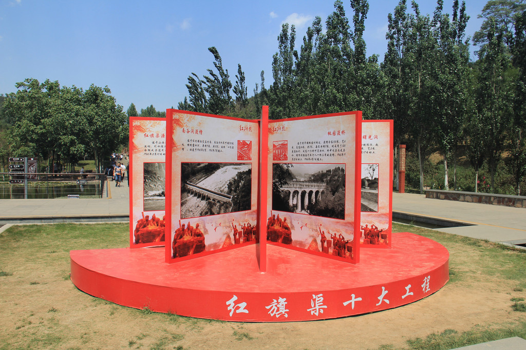 红旗渠工程于1960年2月动工,至1969年7月支渠配套工程全面完成,历时近十年。该工程共削平了1250座山头,架设151座渡槽,开凿211个隧洞,修建各种建筑物12408座,挖砌土石达2225万立方米,红旗渠总干渠全长70.6公里(山西石城镇~河南任村镇),干渠支渠分布全市乡镇。据计算,如把这些土石垒筑成高2米,宽3米的墙,可纵贯祖国南北,绕行北京,把广州与哈尔滨连接起来。