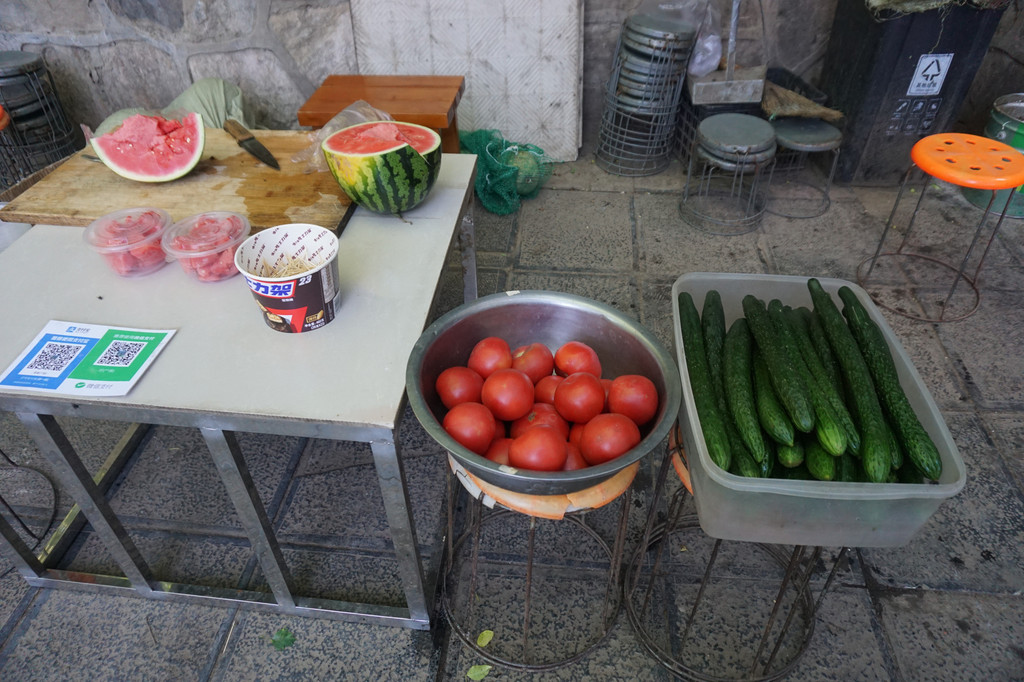 一口西瓜、一口泡面。