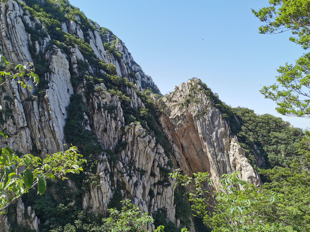 绿植长在崖壁上,