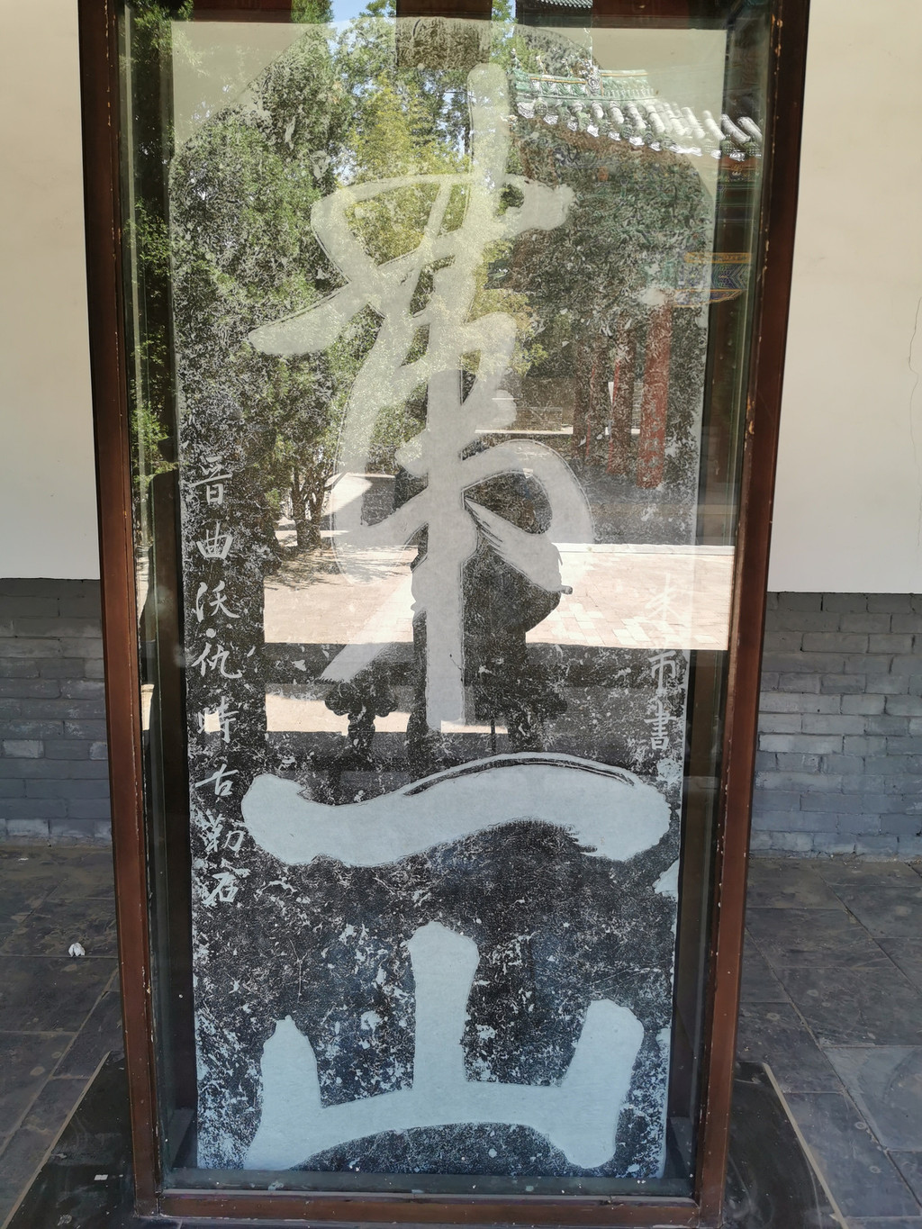 【古碑】:在玻璃罩中、保护的好。