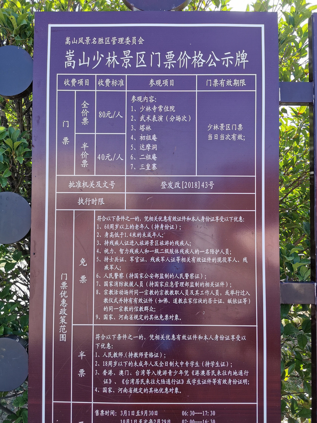 少林寺门票:80元。