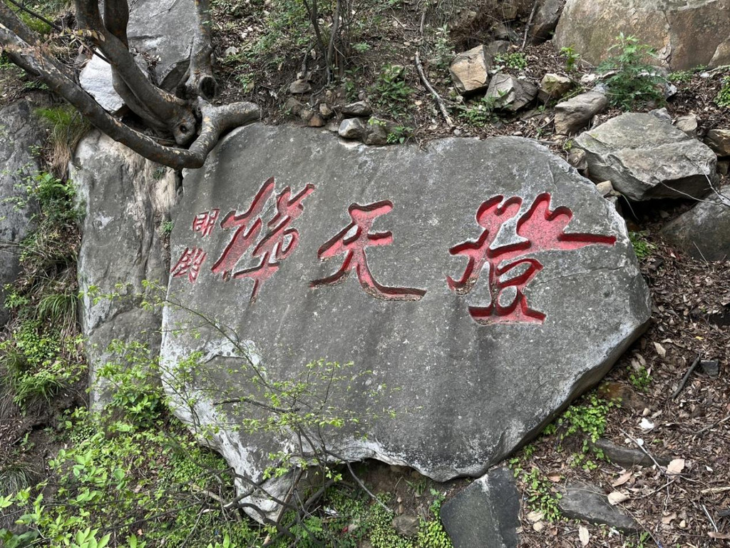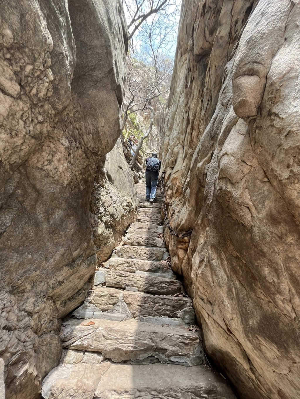 在三皇殿稍微停留了一阵儿,继续向前走,就这样一直等到看到少林寺的路牌。期间经过了各种峡谷,天梯。这座巍峨的山真的是有各种形态。我们走过一线天的时候试了一下,两个人一起走就会觉得特别窄。