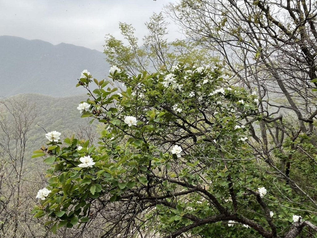 向前爬的时候看到了好多字,都是红色大字。就这样一直走到了登天梯。这里真的是天梯啊,很陡峭。后来我索性手脚并用爬起来了。爬到顶上之后,发现到了一个特别宽阔的平台上,在这里俯瞰景色,超级美。
