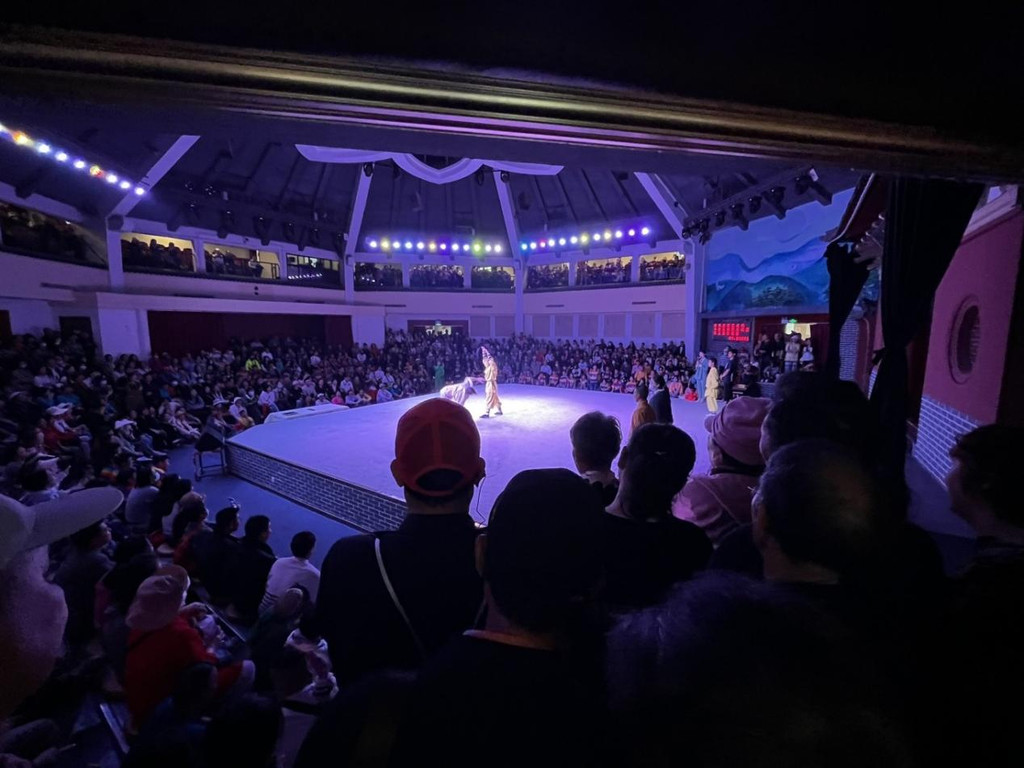 这里还有一个武术表演。这个也是要坐景区接驳车的,大概10来分钟吧。当然,也可以走过去,但是爬了一天的山之后,大家都累了,果断选择接驳车。