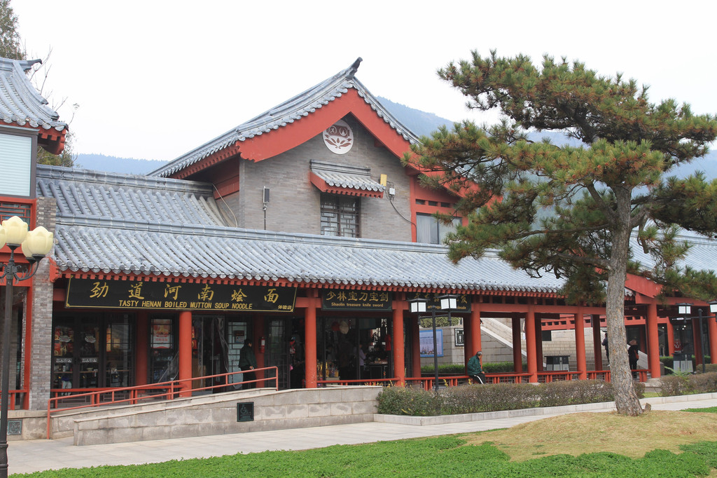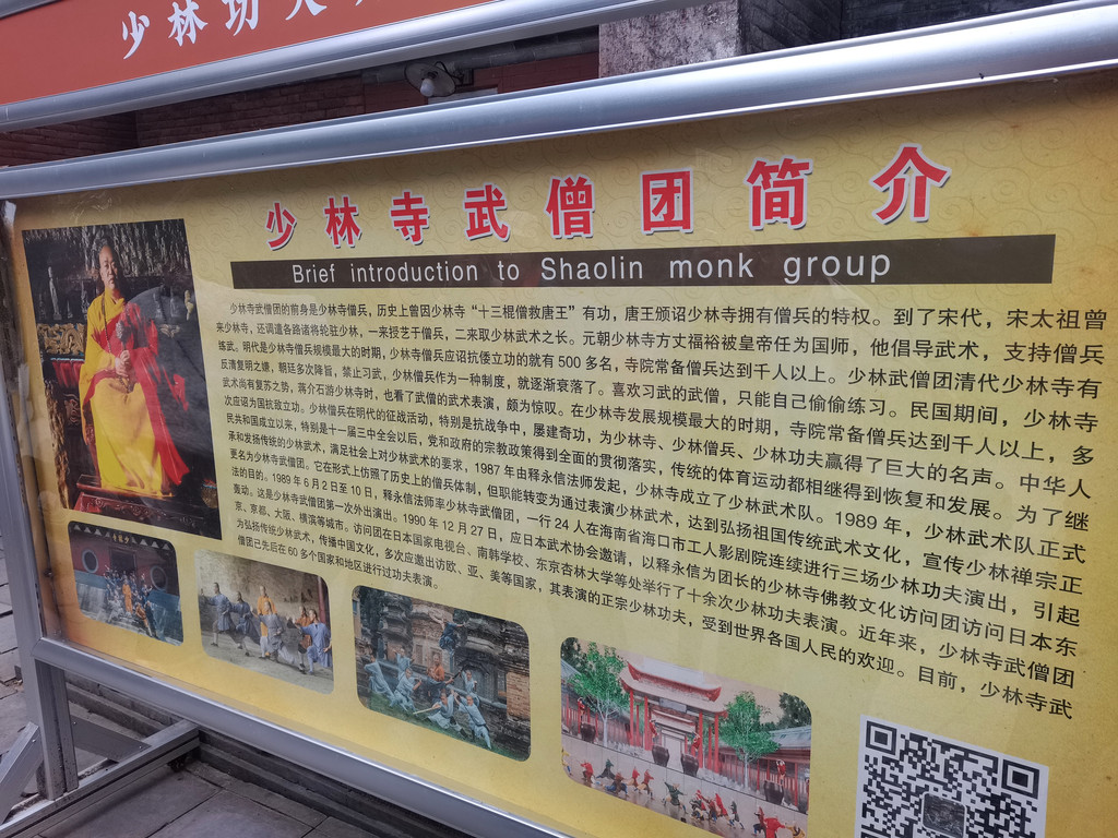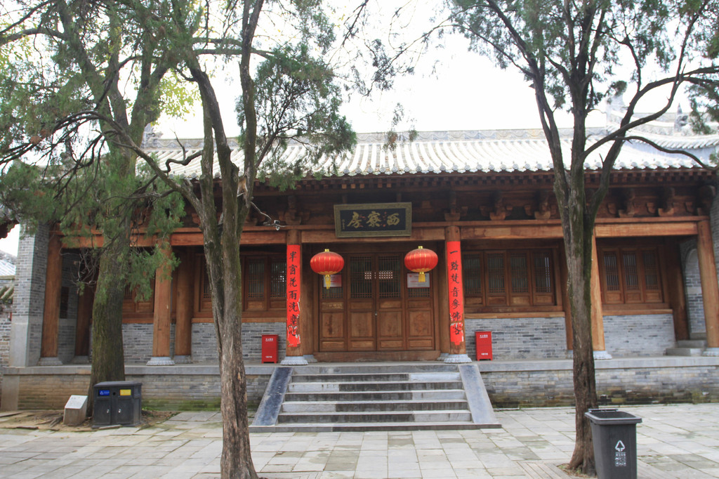 看罢武僧表演,沿中轴线西侧路下行,道路宽敞,还可走汽车。青砖建筑虽然是明清式样,却都安装了现代空调。时光荏苒,少林寺早已今非昔比,不再是几十年前的颓败模样,早已成为蜚声海内外、对外交往广泛的千年名刹。