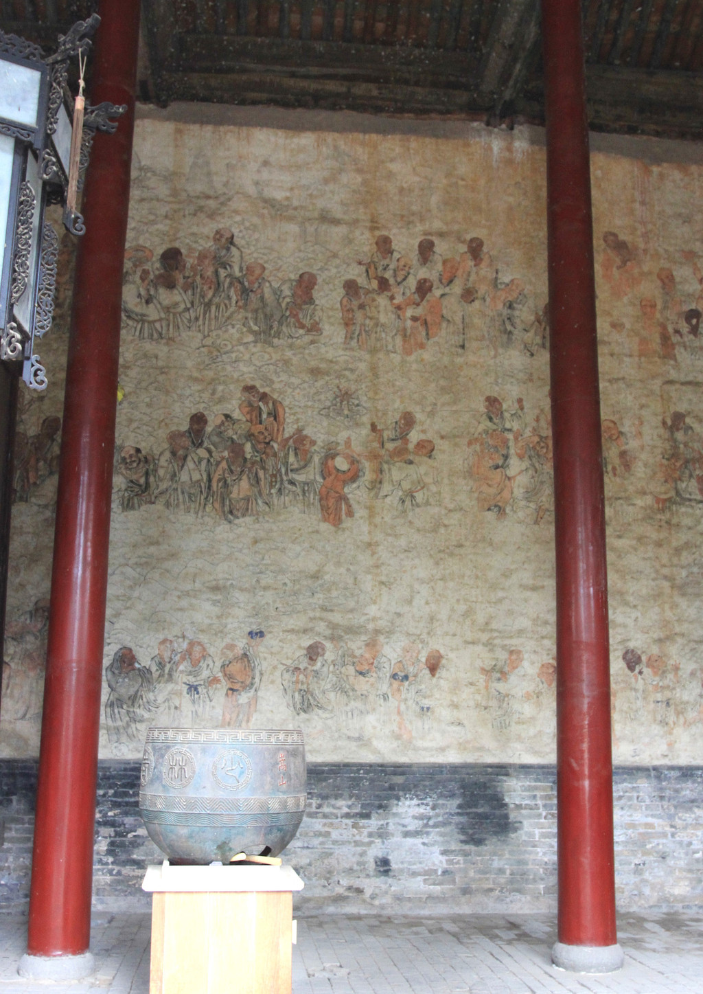 西方圣人殿内的壁画非常有名,是少林寺壁画中的珍品。大殿背面及东、西两墙壁上都绘有彩色壁画,最著名的有“十三棍僧救唐王”、“五百罗汉毗卢图”,色彩艳丽、构图和谐,衣袂飘飘,展示了唐代壁画的高水准。