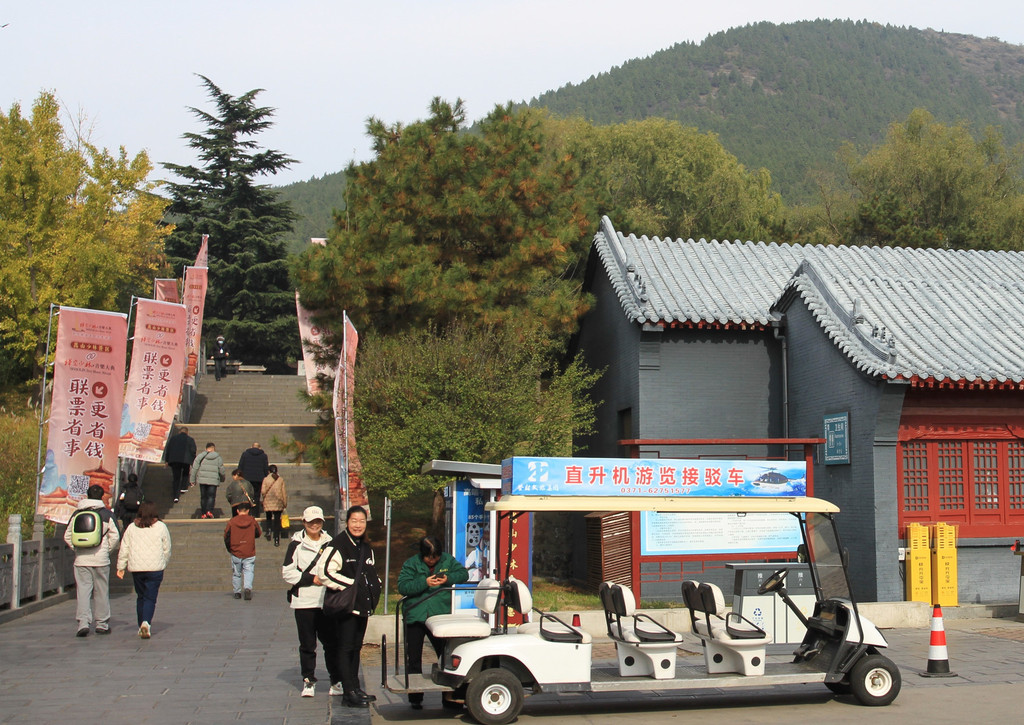 等候景区车间隙,与司机聊天,知晓了景区一些情况。三皇寨以奇山异石、险峻秀美为特色,景色很美,但需较长时间爬山(索道到半山腰),于我们已是力不从心,且往返耗时较久。况且我们主要目的是来看少林寺,留点遗憾很正常。