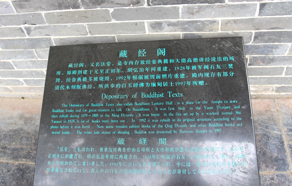 蔵经阁,又名法堂,为高僧讲经说法和贮存佛经典籍之所,殿内现存有历史上保存下来的清康熙三年(1664年)的部分木刻版佛经。