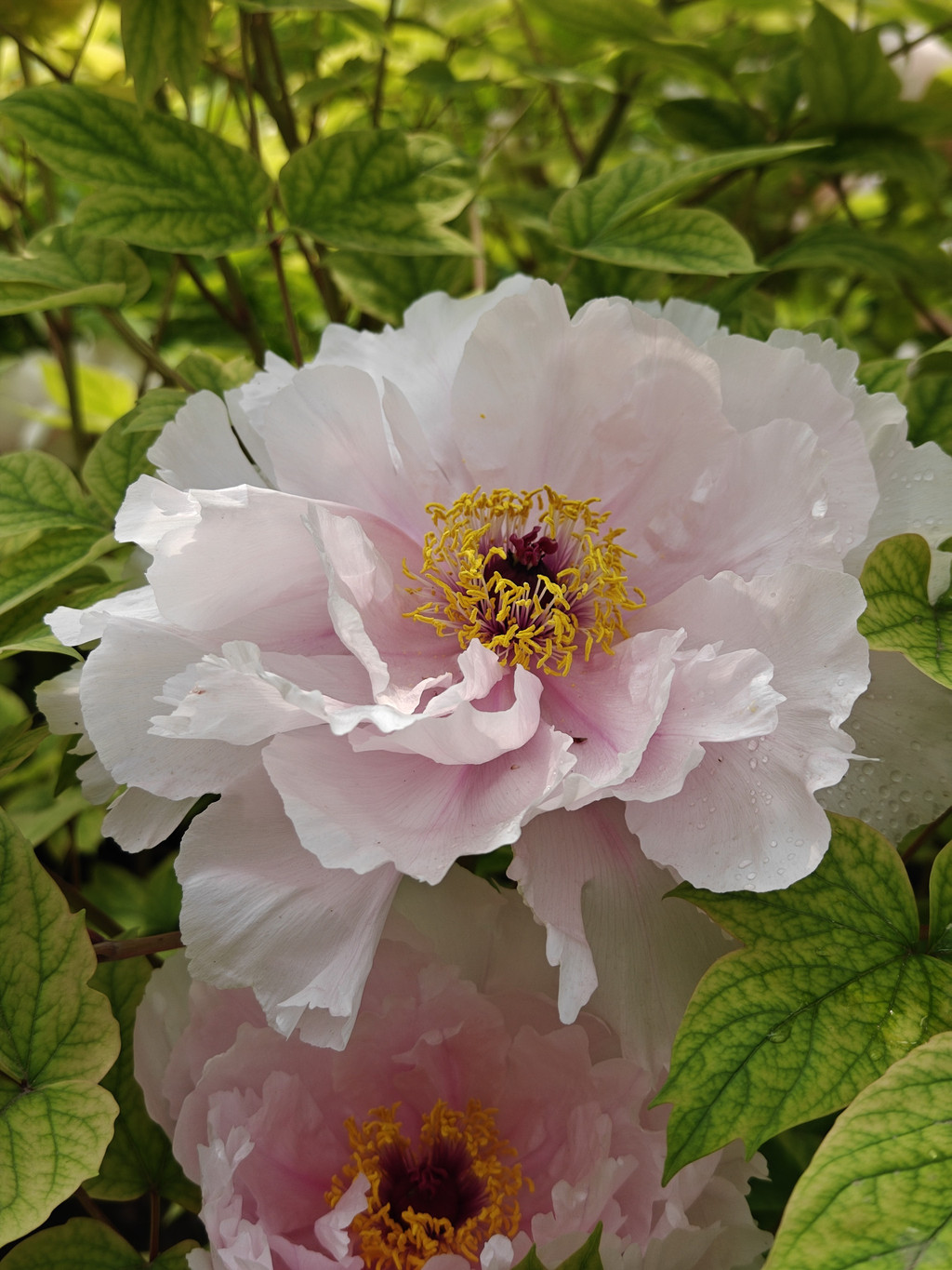 雨后的阳光特别清澈,这缕光打在牡丹花上,照亮了老妈