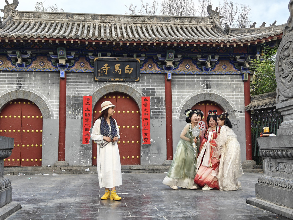 选了中午的航班,一家人很悠闲的不用赶飞机,到郑州后直接租车就往洛阳方向去。第一站是白马寺,因为白马寺在洛阳的东北边,从郑州方向过去是顺路的。