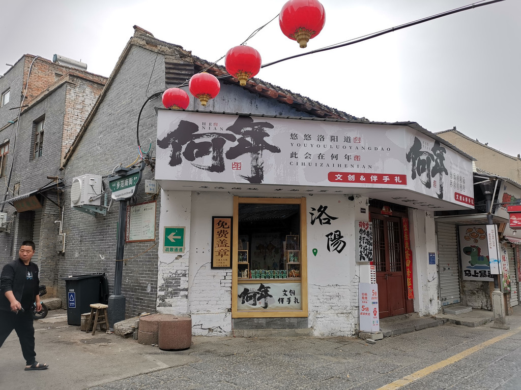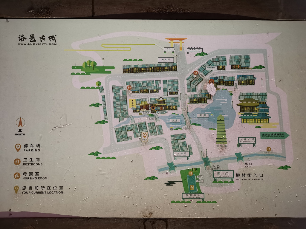 吃饭点离洛邑古城的正门还有个几百米的,停车确实难,兜了两圈结果回到吃饭点附近停了。
