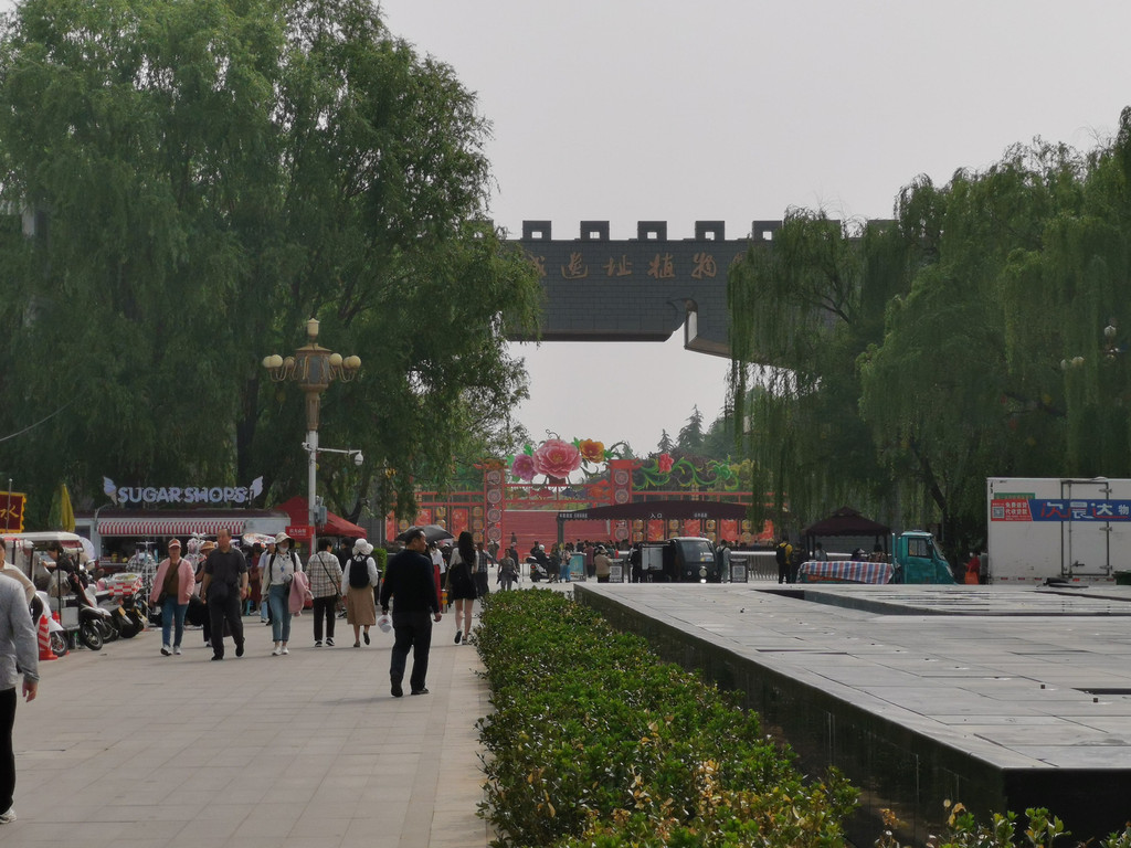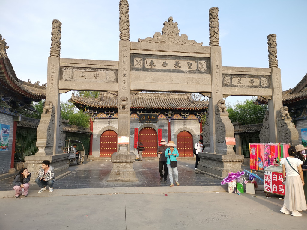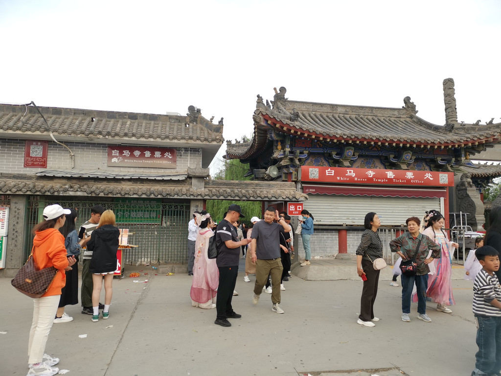 然后对白马寺一顿吐槽,一个字就是乱,门前和附近的交通乱七八糟,很多摊贩在路边经营,或者说管理方有意将交通两旁出租了,而且路引不清晰,在看上去像正门的地方停车后,顺着人流走过去,去到门口发现贴了一张A4纸,说这里改为出口了,入口在那里那里,真是服了。