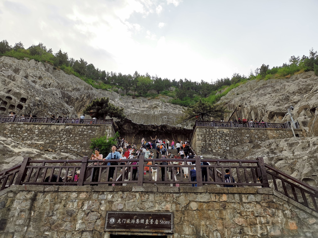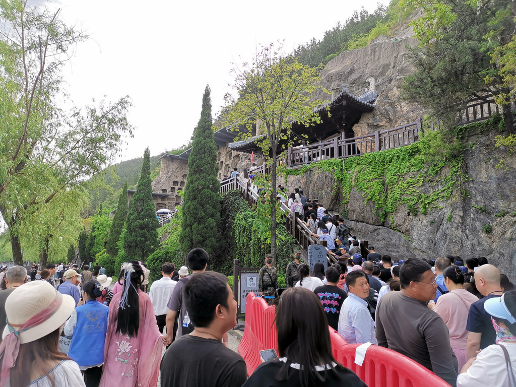沿途一路走进去,山壁上有很多石窟,要想上去近距离看,就要走楼梯上去,人太多了,据说昨天周日的人更多。
