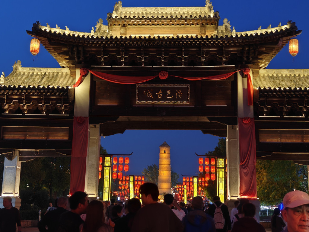 洛邑古城的牌坊,晚上的夜景不错。