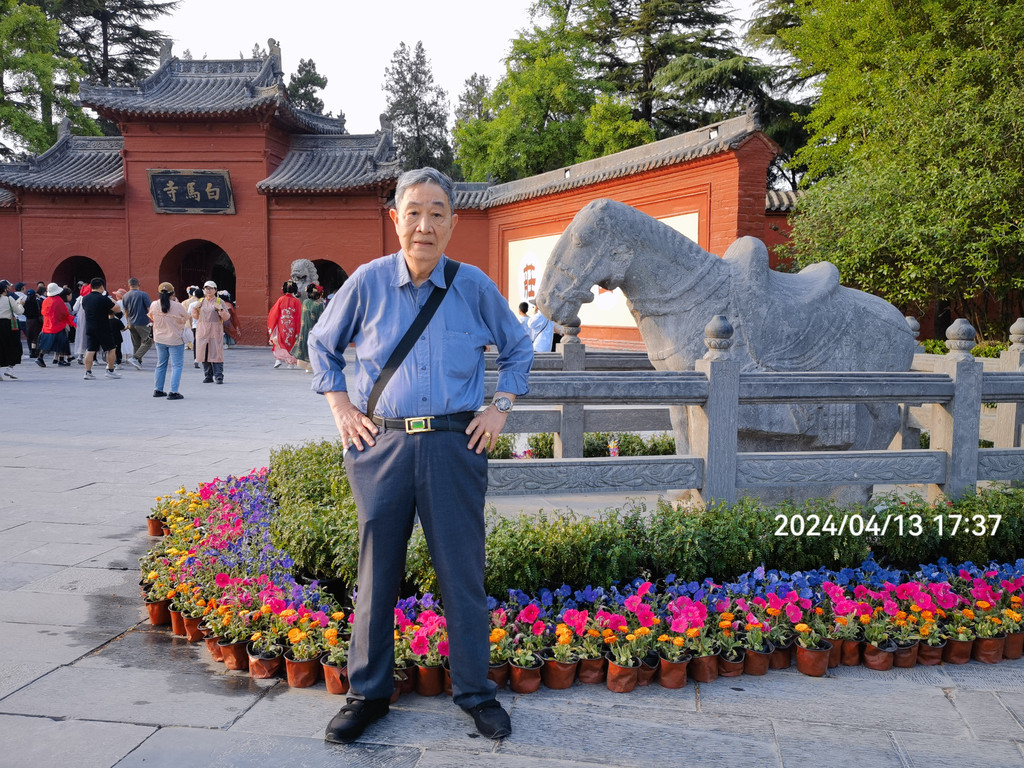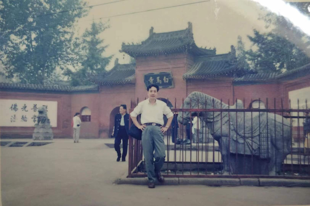 老爸四十年前来过洛阳几次,这是当年在白马寺前的留影,山门是一模一样的,但感觉这白马更古朴更生动,不知道是不是拍照角度问题。网上查到这是北宋魏咸信墓前的神道石刻马,1935年被寺主持搬过来的。