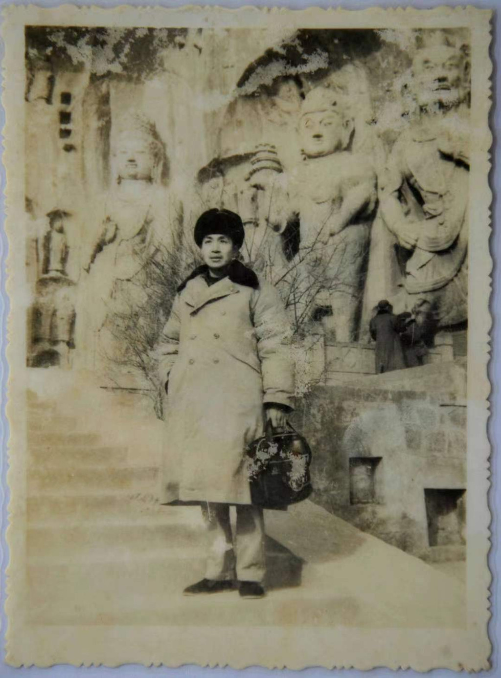 老爸四十年前拍的照片,那个时代的标配,雷锋帽军大衣手提包,脚踏灯芯绒鞋。