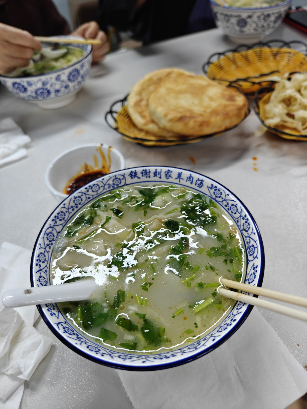 早上下雨了,就近在酒店旁边的全羊汤吃个早餐。
