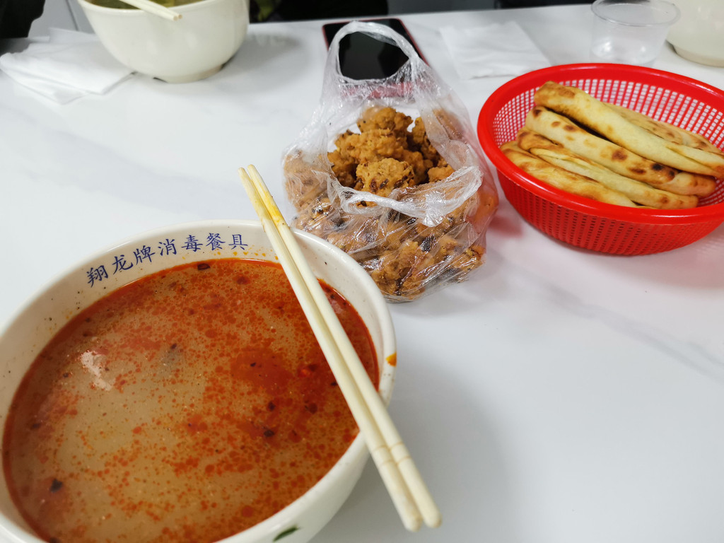 龙麟路的牛肉汤,网红店。家人们评价还没有羊肉汤好喝。这条路是美食一条街,附近还有好多家早餐店