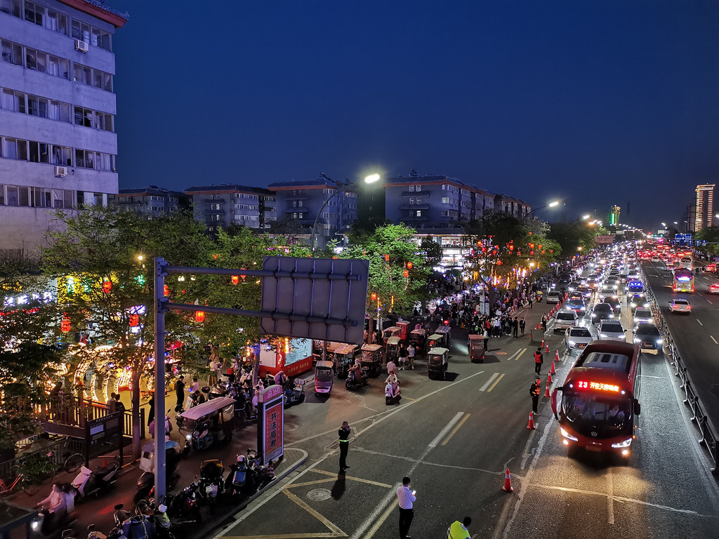 这是从过街天桥上拍的,一路都是摆摊的。