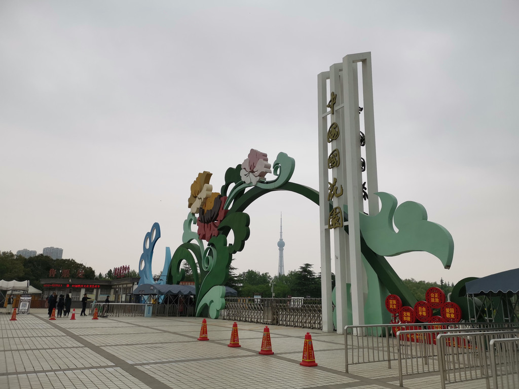 这是调整后的正门前的广场,远处是神州牡丹园,收费园区,游客非常多。