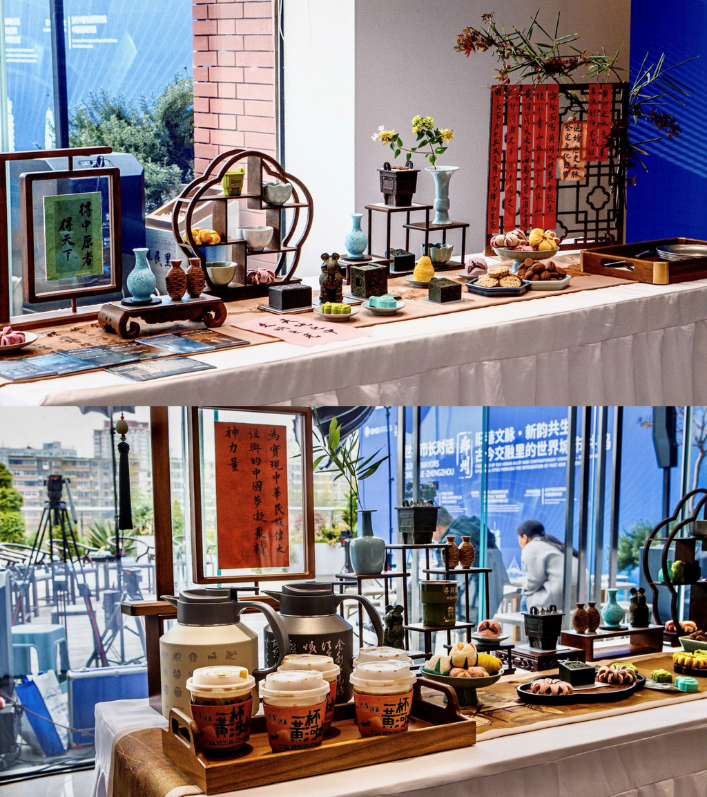 10月24日,国外市长及媒体嘉宾们先后参访了商都遗址博物院、漫步商代古城墙、沉浸感受阜民里古巷,在3600年的郑州商代古城墙脚下,在管城阜民里观景阳台之上,品尝“杜岭方鼎”、“兽面青铜钺”、“大河村彩陶双连壶”等多款以郑州出土的商朝青铜器、陶瓷器文物为造型元素的创意甜品,品饮河南本地特色文创饮品“一杯黄河水”拿铁咖啡与煎茶茶道文化,感受到了一个历史与现代交融共生的新郑州。