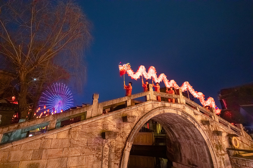 当夜幕降临、花灯明亮,在水乡,舞龙灯、喷火表演、戏剧表演、舞蹈表演等各色演出便会轮番上阵。