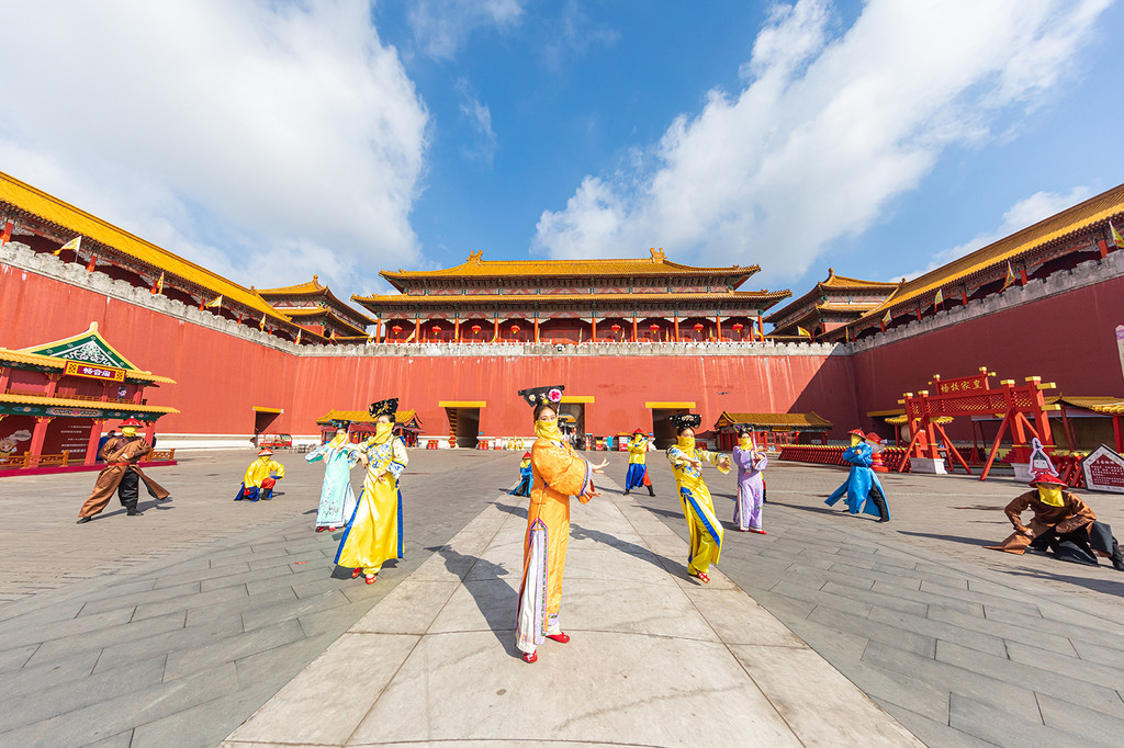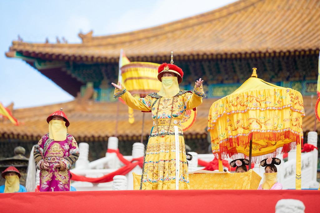 此外还有百官朝贺祈福大典。皇帝会携皇后、妃子,接受百官的朝贺。这场表演里穿插有喷火表演和舞蹈表演,可以说是一场让人身临其境的5D演出。