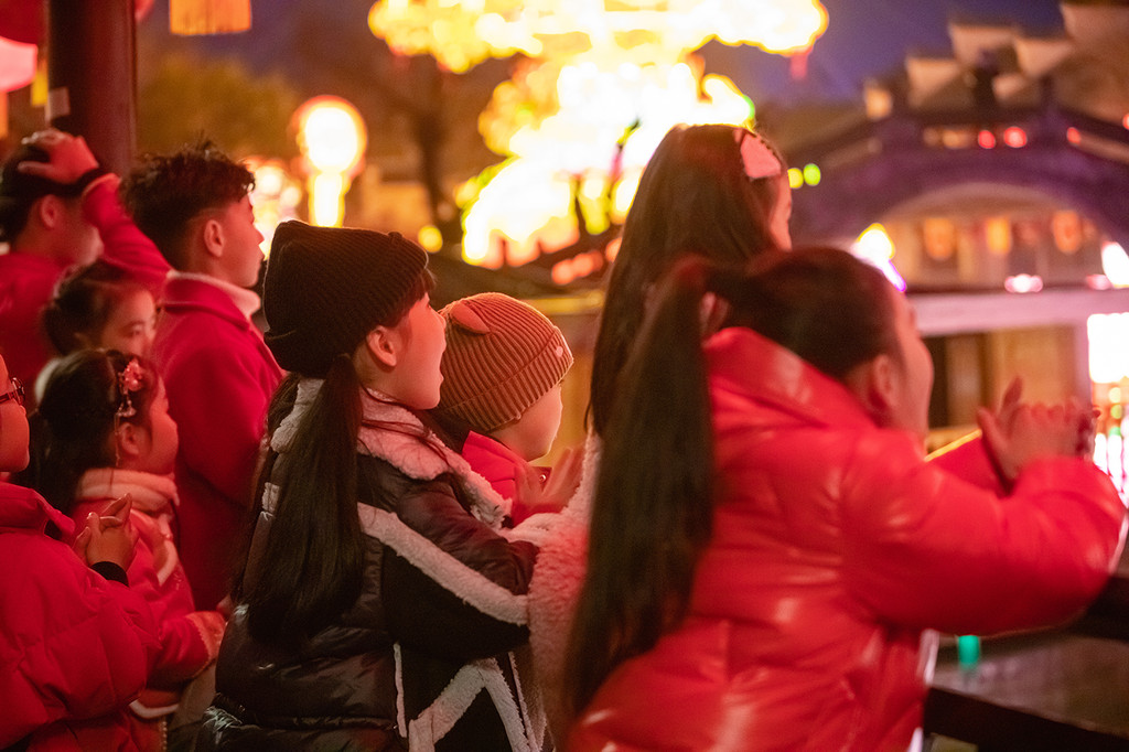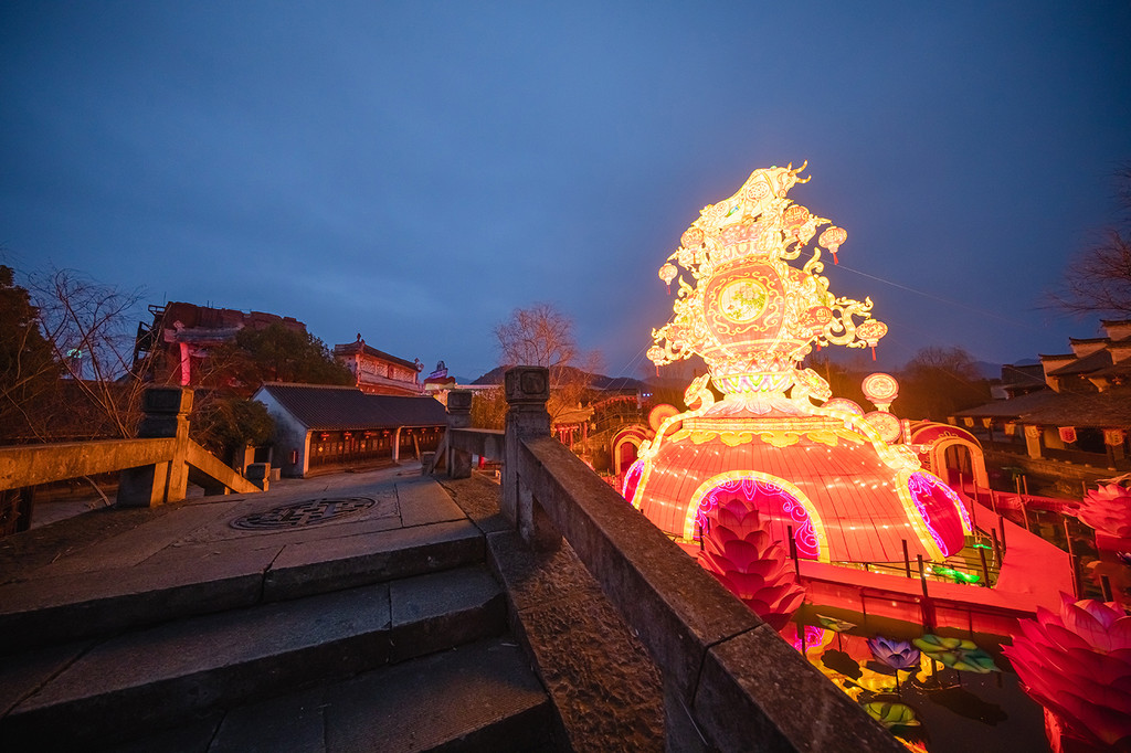 梦幻谷每年春节前后的江南水乡区域是我十分喜爱的。今年,这里有一座18米高的江南灯王,边上则有各种花灯伴展。