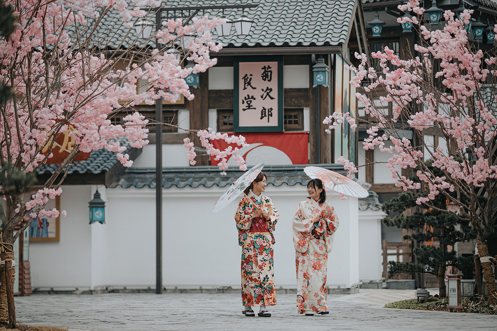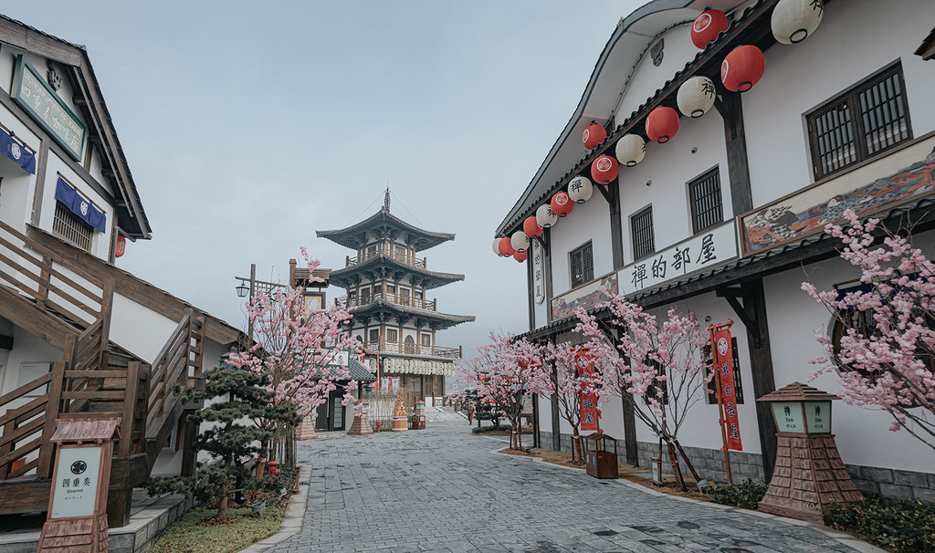 樱花精舍是广香街新开放的一处主题民宿区域,道路两侧种满樱花树,房屋结构和细节装饰都充满浓郁的日式风格。