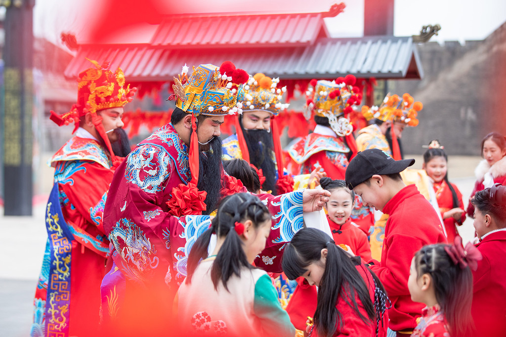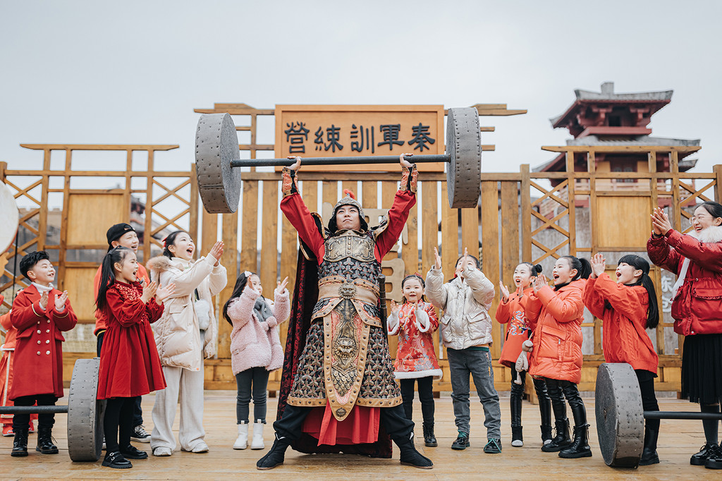 春节期间还能在这里体验游戏江湖。打扮入木三分的裘千仞、周芷若、东方不败等NPC会和游客互动游玩,闯关打卡。