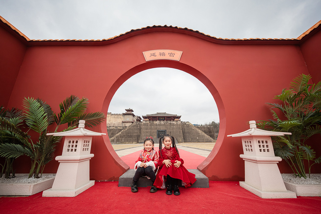 春节前后的秦王宫景区布置了独特的年味装扮,道路两侧有喜庆的红幅,道路正中还能发现一只高达10米的巨鼎。