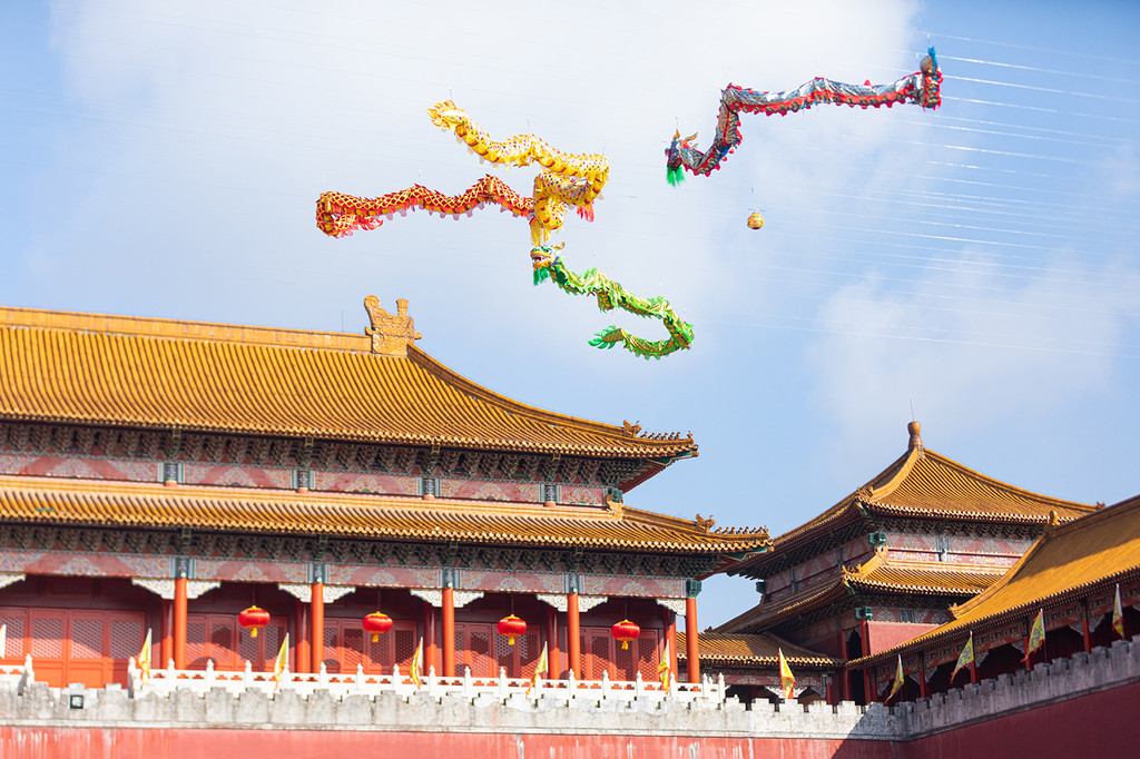在午门广场,则有四条“巨龙”盘旋在空中,每当到表演时刻,四条巨龙就会翻转腾飞,在皇宫的背景掩映下,表演新颖又大气。