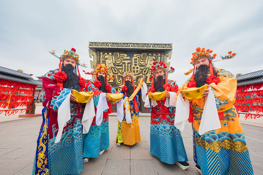 五名财神站在鼎前,真的是见者有财运,一定别忘了抢一下财神抛出来的巧克力硬币!