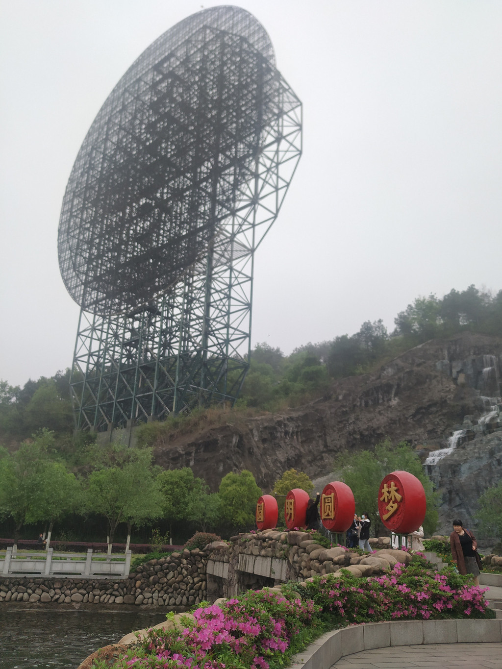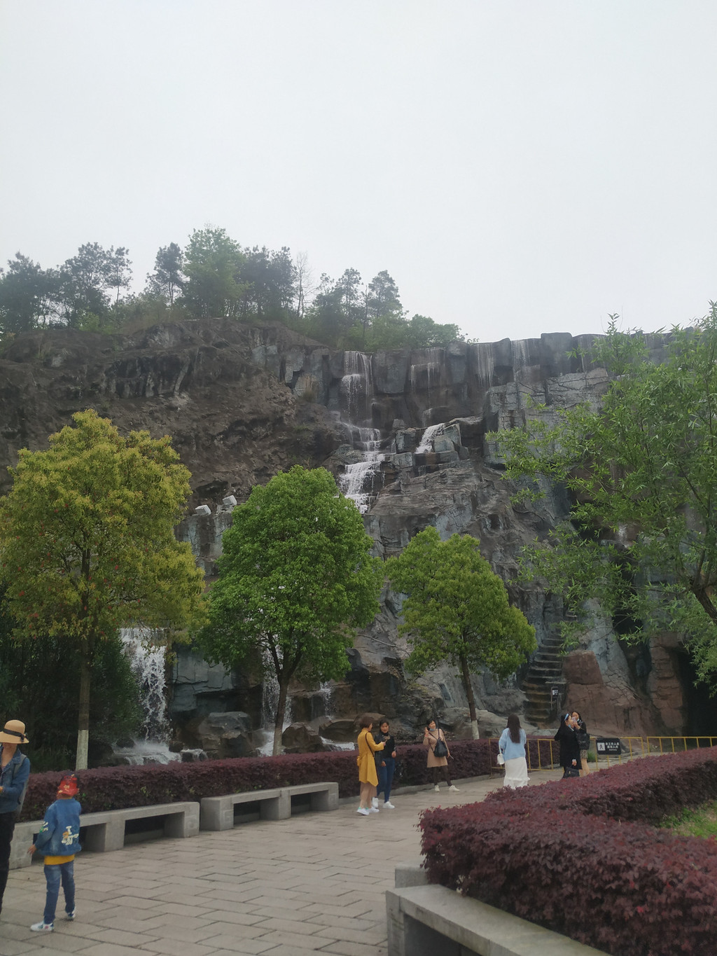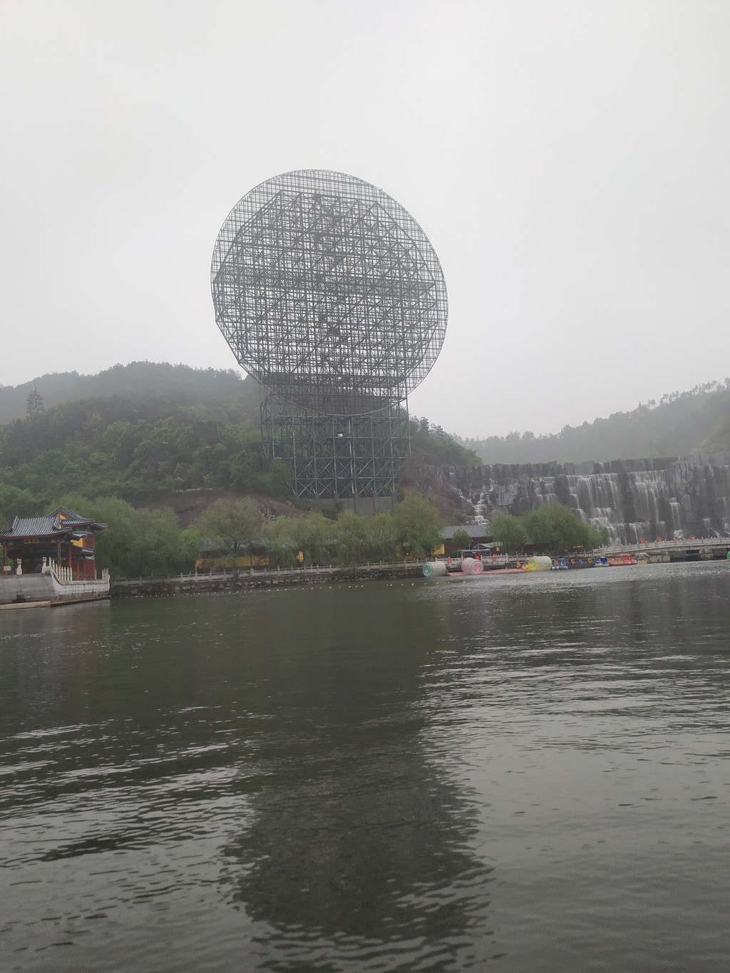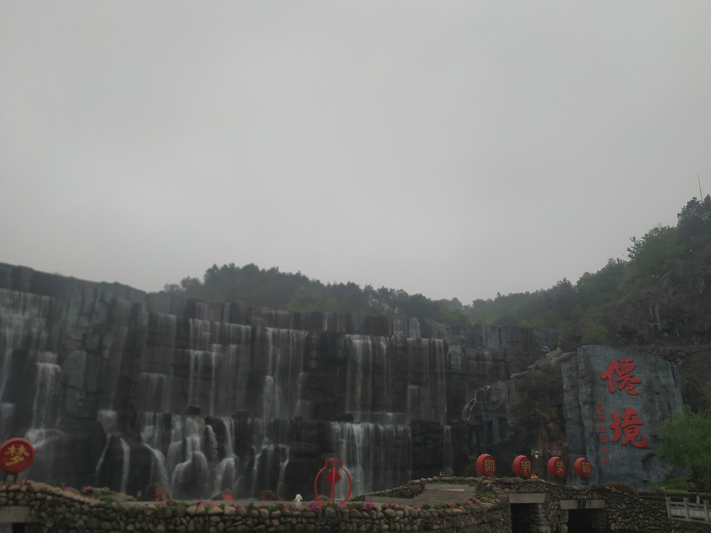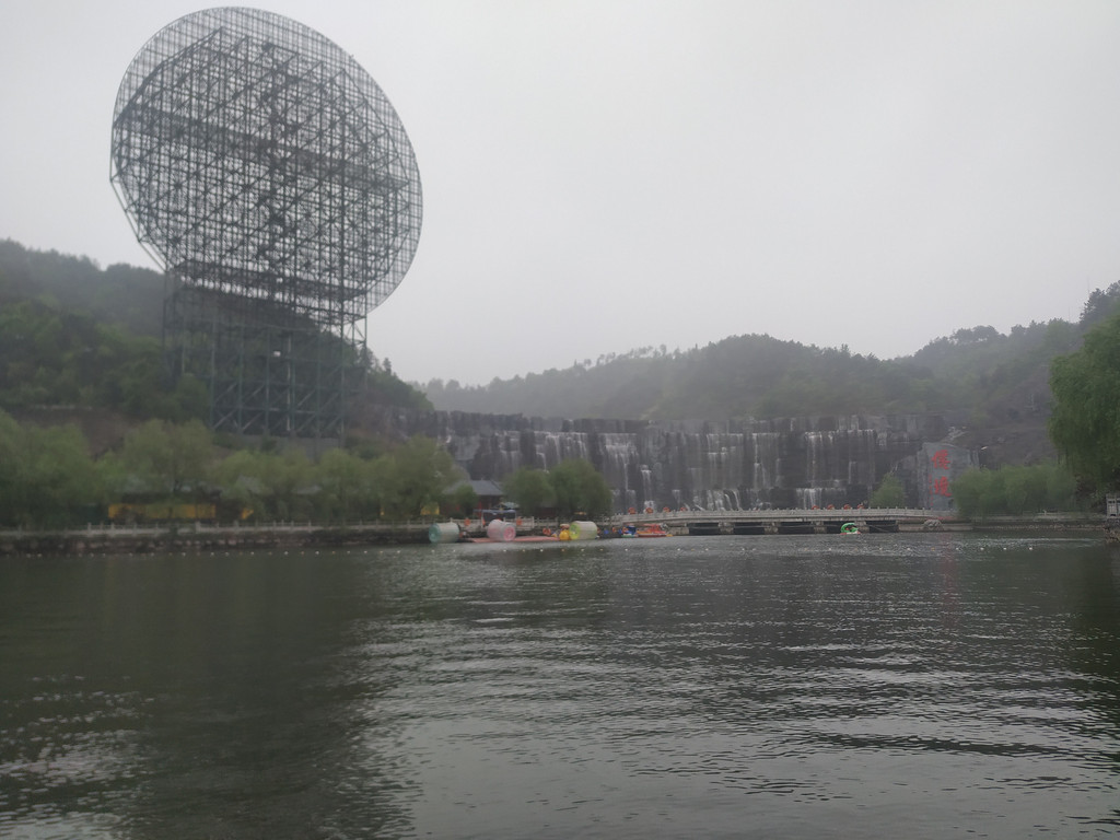 天池瀑布,瀑布高30米、宽150米,是目前国内最宽的人造瀑布;弧形的天池水倾泻而下,声音震耳欲聋,蔚为壮观。