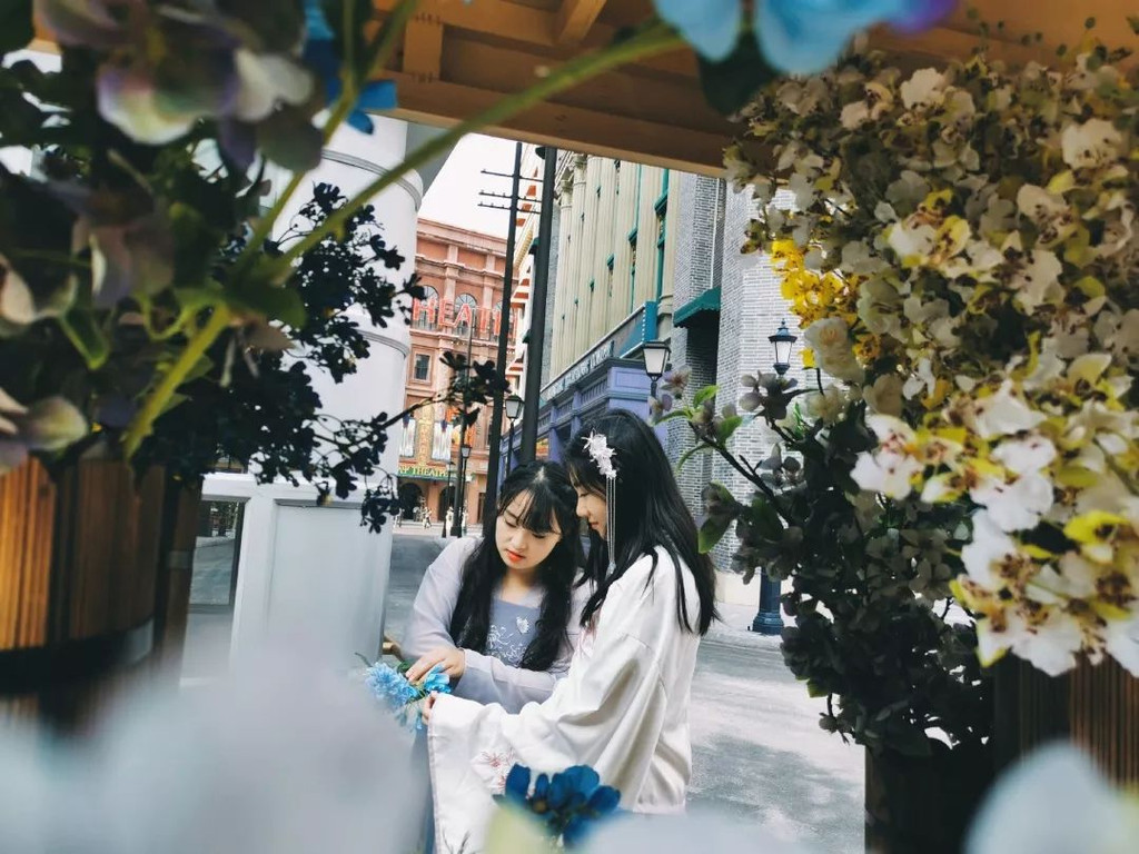 几日前我们开始自己着手准备,因为去横店一定要穿汉服!!如果你有精力准备发饰,还是建议带去的,因为真的很好看哈哈哈