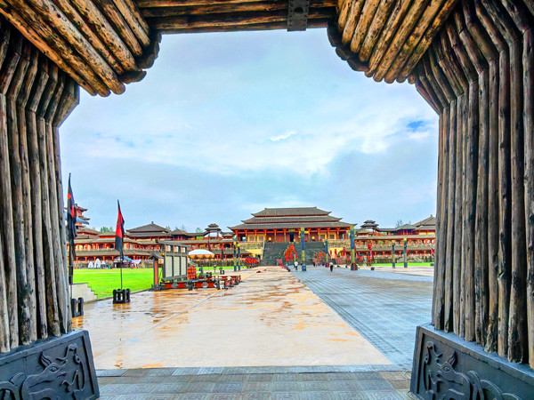 这座“四海归一殿”大殿纵深 600 米,高达 448 米,由 124 根柱子支撑着,气势恢宏,淋漓尽致地展现出了秦始皇并吞六国、一统天下的磅礴气势。