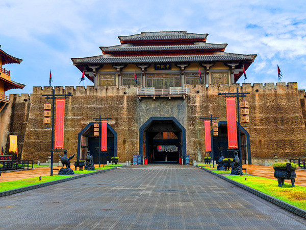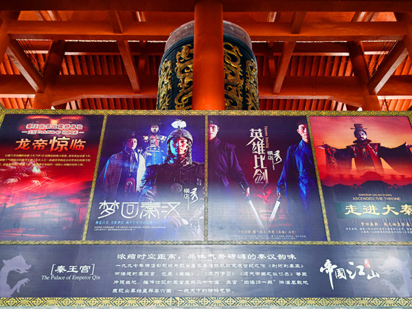 秦王宫以秦咸阳宫为原型,设计师们花费四年心血设计,以城门、中宫门、主殿连线为中轴线,角楼、箭楼、阙楼、望楼、长廊、云梯等建筑呈现东西对称分布,有雄伟壮观的王宫宝殿27座,面积17169平方米。城墙长2289米,高18米。秦汉街长 120米,占地面积20亩,建筑面积6000平方米的,展示了秦汉时期的街肆风貌。