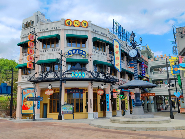 走进景区,只见那充满复古韵味,富有时代历史特色的一系列建筑便映入人们的眼帘。狭窄而蜿蜒的街道,两旁是古色古香的骑楼,让人仿佛穿越到了上个世纪的香港。街道上熙熙攘攘,热闹非凡,各种店铺招牌琳琅满目,散发着独特的魅力。