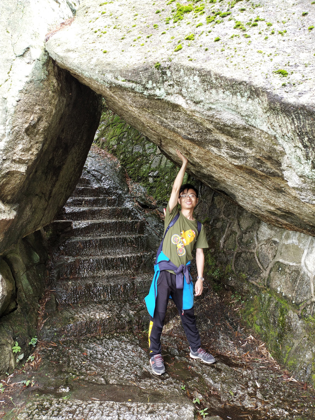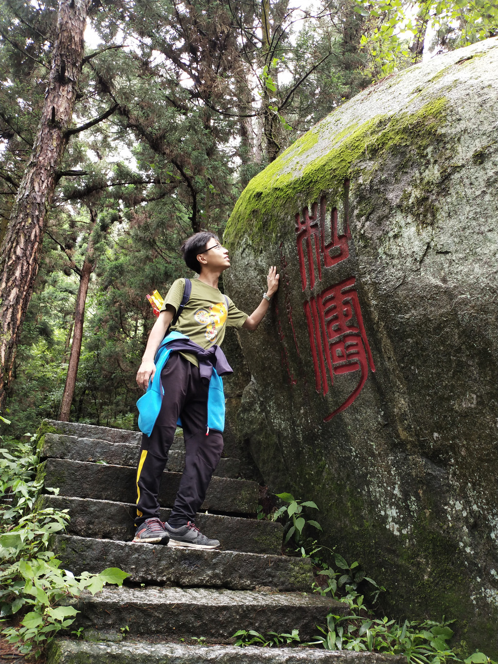 每隔一段距离都有固定摊点,主要卖水和食物,沿路也可以碰到摊点,甚至可以买到鞋子。环山的寺、庙、观、庵据说都很灵验,偶有游客参观。烧香礼佛的主庙是南岳大庙,集中道教和佛教文化。今天阴天不闷热,地面水汽蒸发少。虽然大汗淋漓,却并不躁热,林间凉风阵阵,爬累的时候稍作休息就迅速恢复了体力。早上湿度大,心理有点发毛,担心到不了山顶会疲惫不堪,今天真是好天气,“天公作美”。