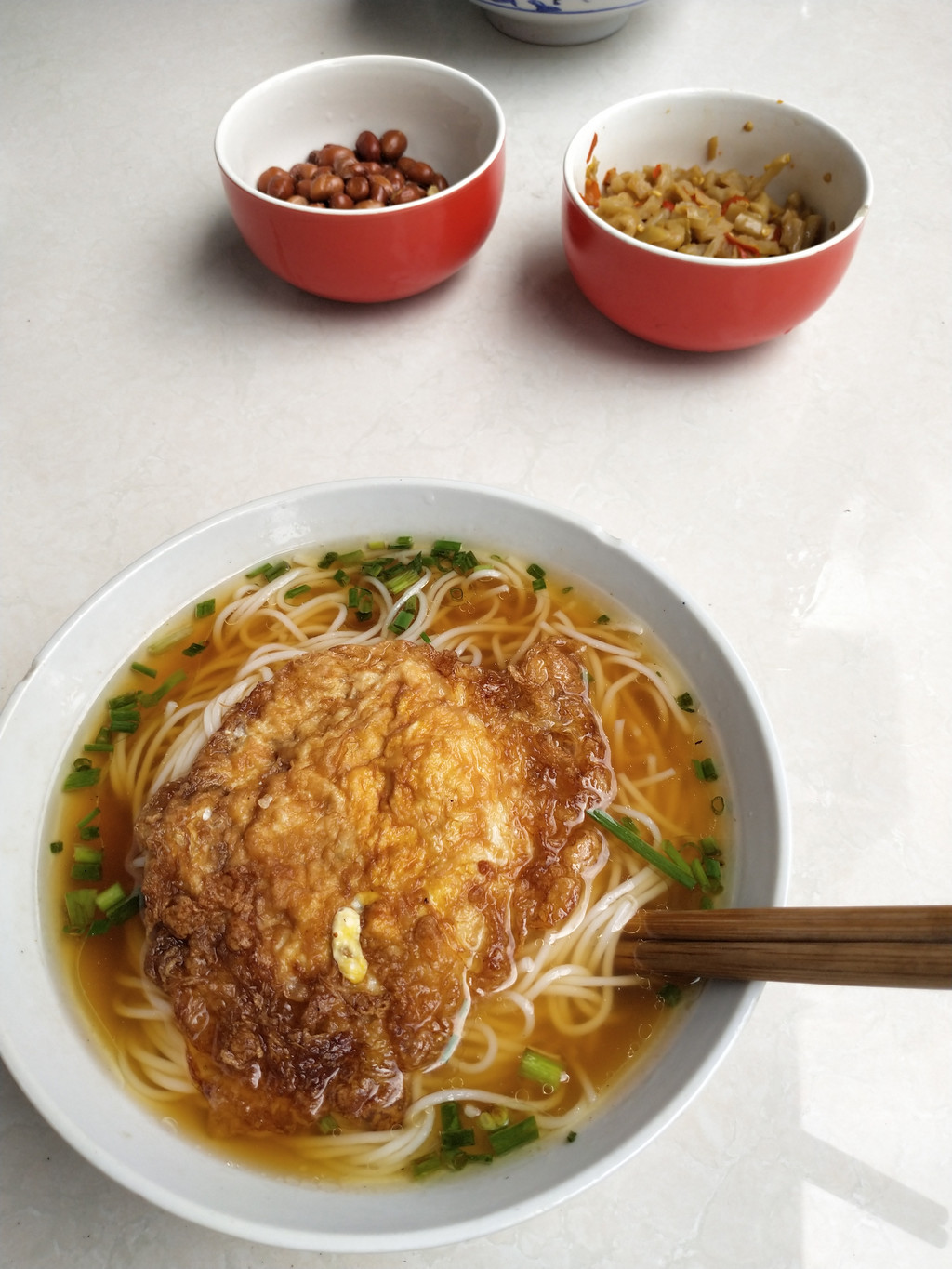 民宿老板提供的早餐,粉是早上从山下买回来的,鸡蛋是自家鸡下的