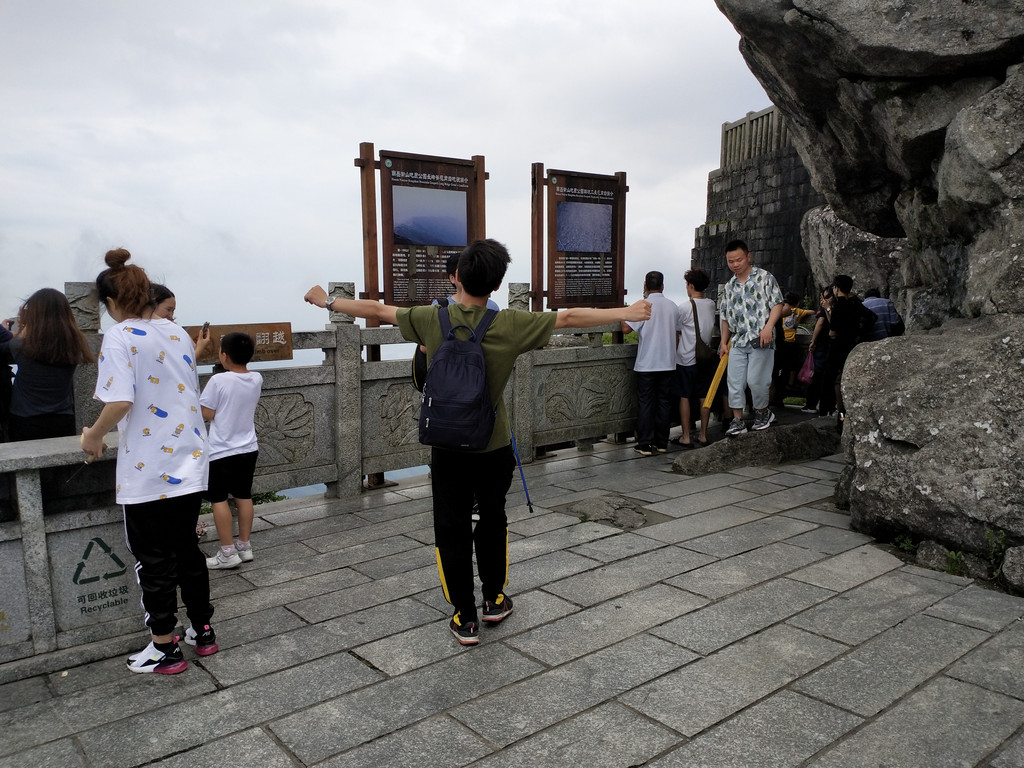 周边的观景台可以远眺四面八方,海拔1300米,山脊像巨龙,以祝融峰为起点蜿蜒向四处,水汽时不时地远处吹来,大家都惊呼不已,纷纷拿出手机或相机记录下这个惊喜时刻,水汽会爬升,在平地的人无法触摸,但是当它们吹拂而来时,又似乎留下了什么,一份惊喜就够了。