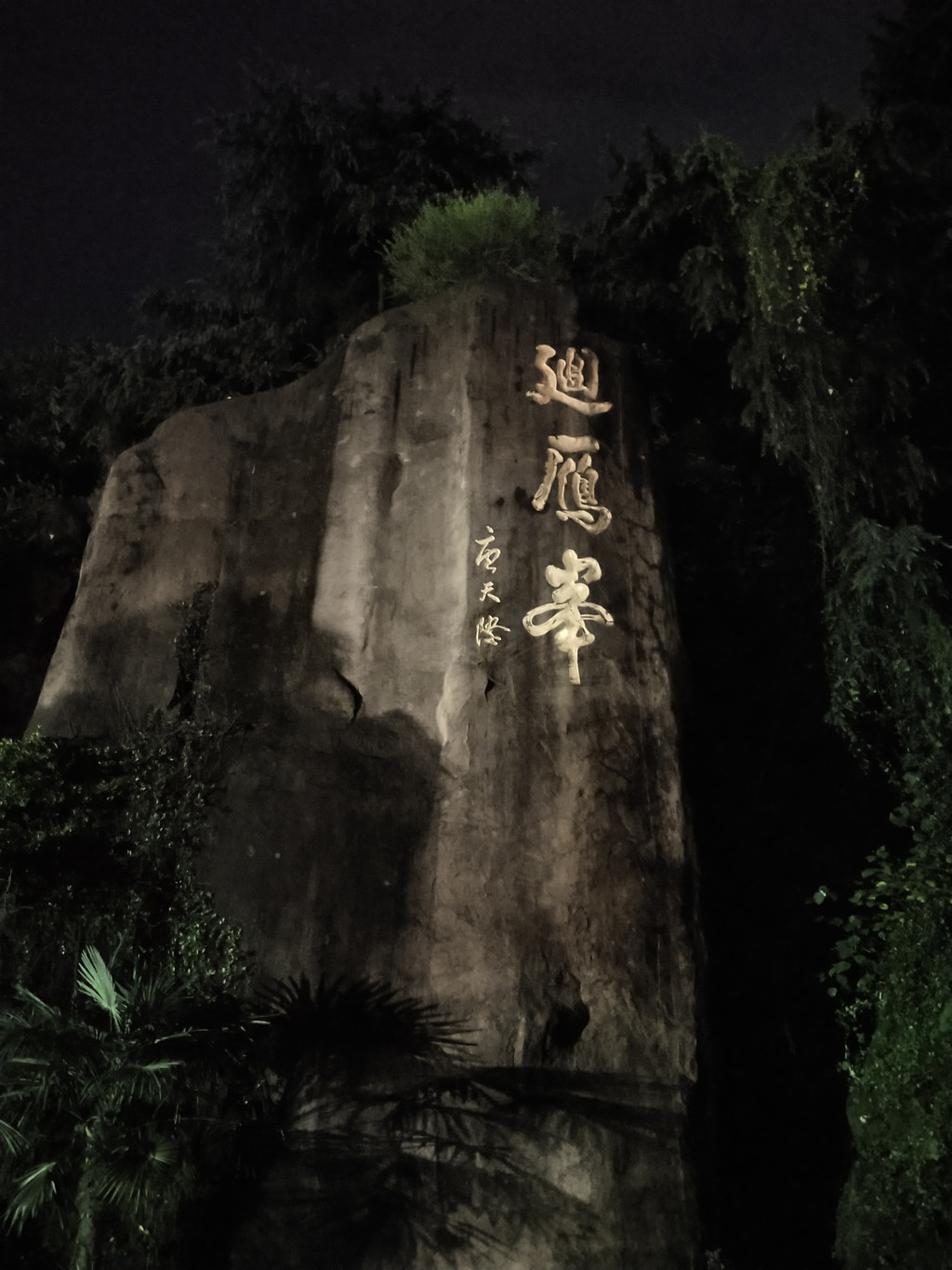 五岳之一的南岳衡山,是旅游胜地。“衡山七十二峰,峰峰各不同”,方圆达到八百里。回雁峰是首峰,坐落在衡阳市区里。当天是雨天,赶到那里的时候是夜晚,因为晚上还要坐车上山衡山民宿,所以游玩的时间有限,只能匆匆上山又下山,走直线穿行公园。