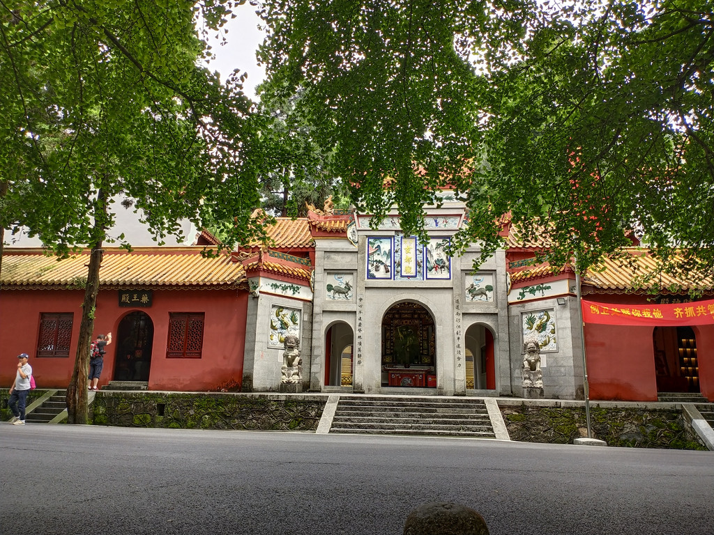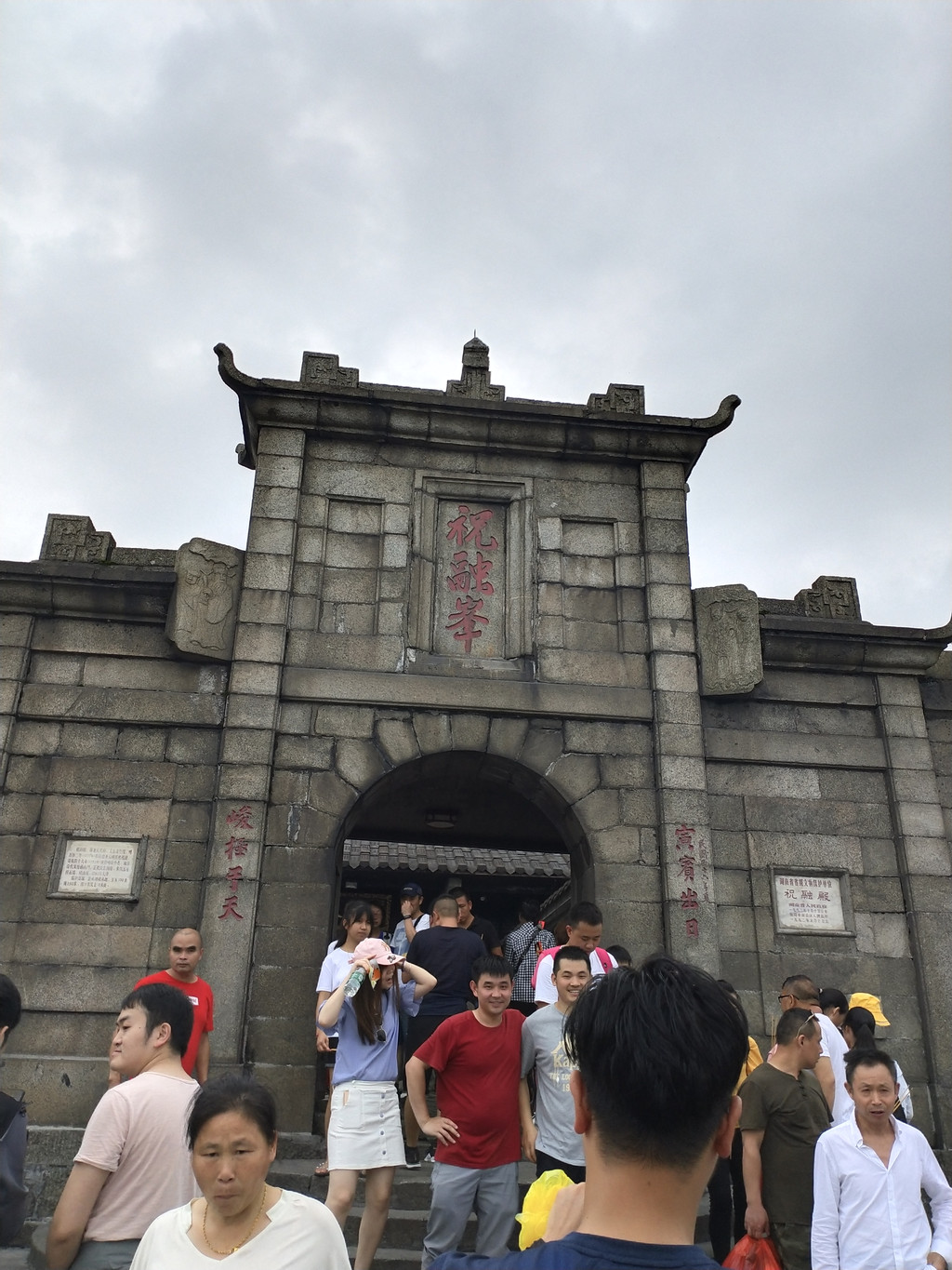 一边拍照一边休息,爬到祝融峰时花了5个小时。山顶有一片广场,可以休息和观景。站在山顶,刚才攀爬的艰辛化为云烟。祝融殿修建在一块巨大的花岗岩上,风吹日晒雨淋,外面干燥,大殿里面的湿度大,有些墙壁悬挂有水滴。殿里不允许拍照,供奉的火神“有求必应”,殿内不大,香客摩肩接踵,有的香客匍匐在地,十分虔诚。游客们都是理性参观、祈愿。