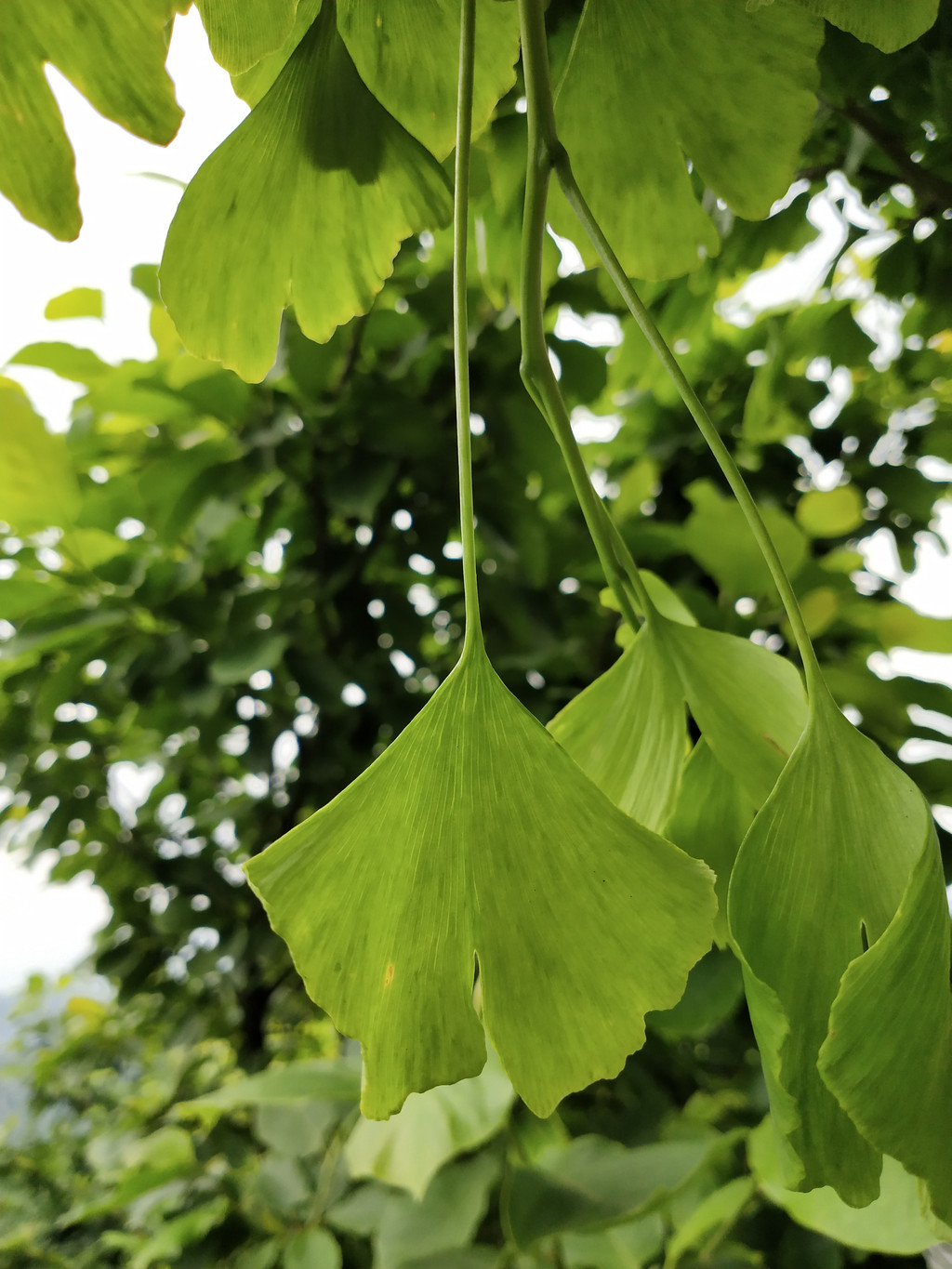 可以见到一些银杏树,又被称为“活化石”,寿命很长,生命力强。如果天气冷时一定是一树金黄色,分外惹眼。夏季是换新叶的时间,先是嫩绿的,再而变成深绿色,低调到让人忽视掉它的存在。叶子像一把小扇子,脉络分明是它的骨骼,叶柄细长,无论是黄色还是绿色优雅满分,如果捡一张夹在书页间,仙气也能自来。