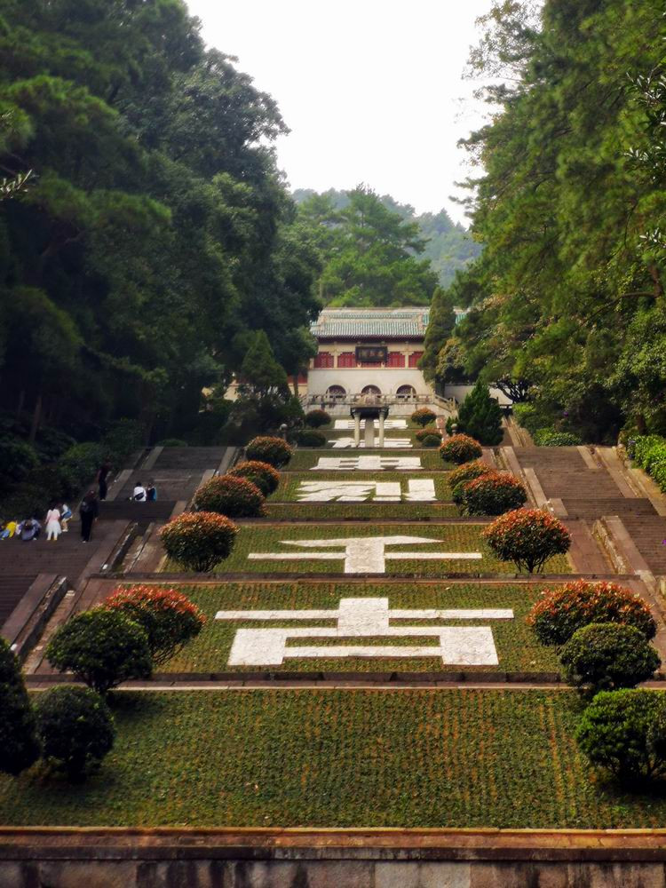 过纪念堂,为两道平行纵列石级,分段递上,共276级,中间草坪用大理石片镶嵌"民族忠烈千古"六个大字。石级半坡间辟为小广场。